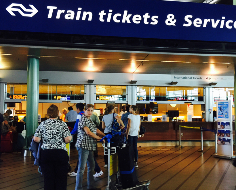 Далее нужно спуститься по эскалатору в подземный уровень (по указателям) и выйти на платформу. Обычно поезд отходит с 1 или 2-го пути. Найдите электронный указатель на платформе с надписью — Amsterdam Central Station. Там же будет указано время отправления и период ожидания поезда.Не садитесь с билетами 2-го класса на места 1-го класса иначе штрафа не избежать. Вы увидите, что вагон разделен на две части, более скромная — это 2-й класс (по российским меркам очень роскошная). Время в пути до Амстердама — 15 минут.