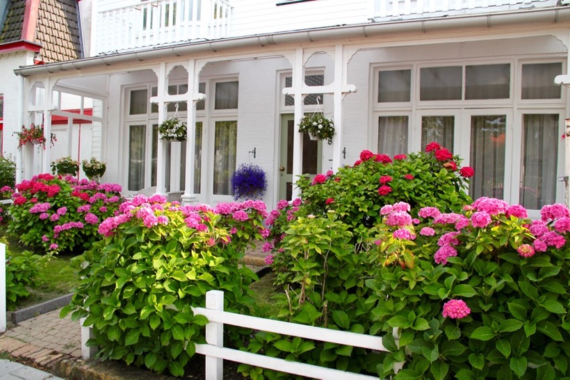 Здесь все благоухает и дышит свежестью, огромное количество цветов в городе, которые в каждом дворике оплетают и обвивают стены фасадов, окна, заборчики, лавочки, ландшафтные фигуры и альпийские горки.