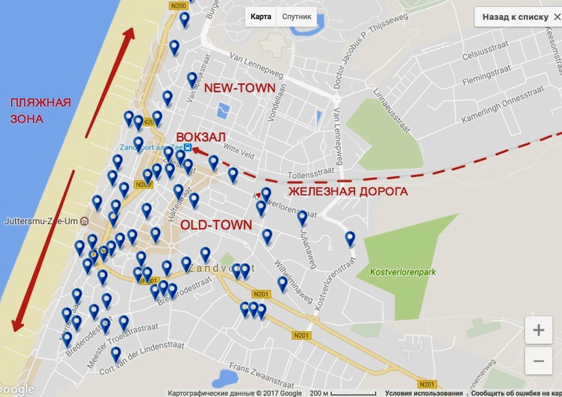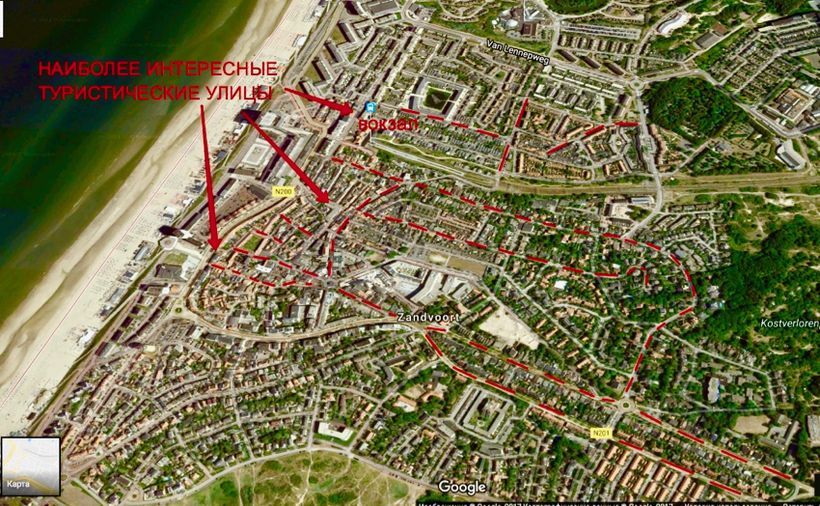 Все перечисленные места и способы как туда добраться, вы легко найдете на карте-путеводителе: Достопримечательности Зандвоорта и его окрестности. Ее можно купить на вокзале Зандвоорта или в Inform-centre для туристов.