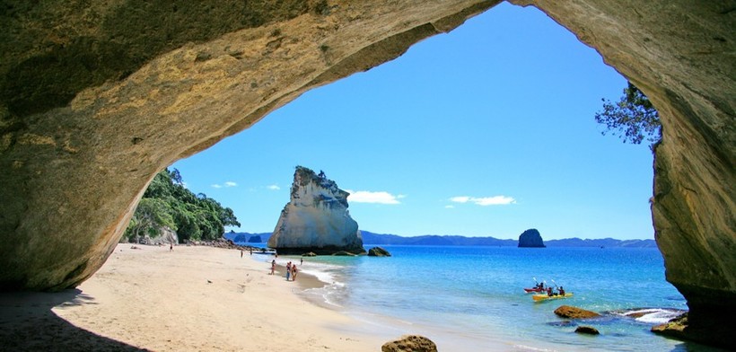 Недалеко от Кафедральной бухты находится пляж с горячей водой – Hot Water Beach – еще одно развлечение для путешествующих. Казалось бы, пляжей по всей стране навалом, но именно этот особенный. Приезжаешь на пляж во время отлива (очень важно проверить расписание), достаешь лопату или арендуешь ее у предусмотрительных местных, копаешь себе яму (или находишь уже готовую), пока не пойдет горячая вода (под пляжем находятся горячие источники), и вуаля – персональная ванна готова! Плюхаешься в лунку и наслаждаешься моментом, как в спа. Но будьте осторожны – вода реально горячая!