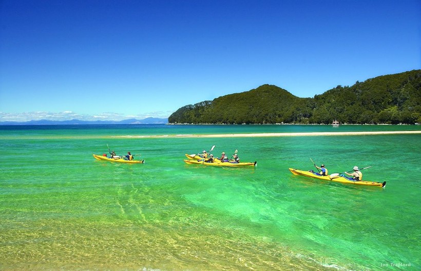 На севере Южного острова в регионе Нельсон (Nelson – оранжевый) расположен национальный парк Абеля Тасмана (Abel Tasman National Park), который идеально подойдет для прогулки на каяках.