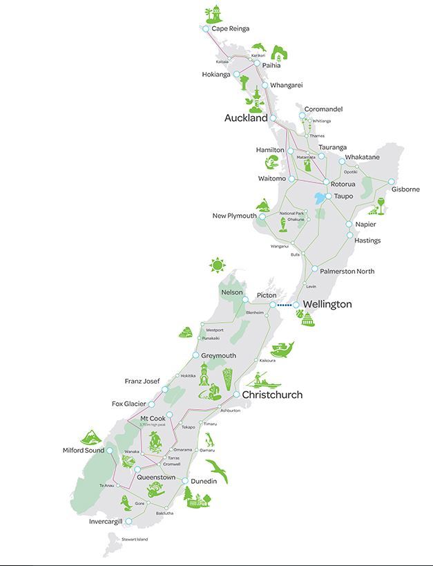 Доехать автомобилем не выйдет из-за того, что Новая Зеландия является островным государством.