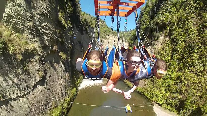 - Bungy. Любителям экстрима уже известен этот головокружительный аттракцион. А родился он именно в Новой Зеландии. Постоянно сюда приезжают отчаянные искатели адреналина, чтобы попробовать различные варианты банжи – обычный прыжок вниз на резинке, прыжки парами, прыжки ночью, с моста, над каньонам и или пролет в узком ущелье в компании таких же жаждущих адреналина.