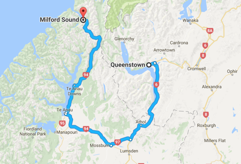 Путь до фьордов из Квинстауна неблизкий (287 километров) из-за того, что проходится огибать горы, и точно займет целый день. Он пролегает по живописной Milford Road с головокружительными видами и местами для остановок, чтобы сфотографировать окружающую красоту.