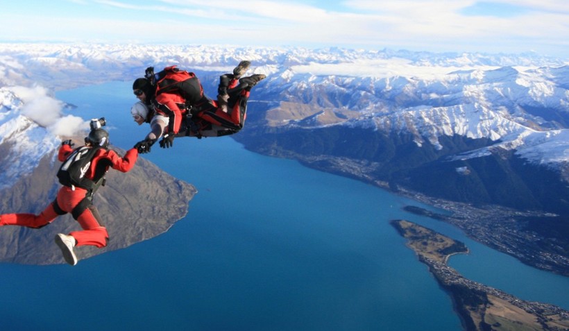 - Прыжки с парашютом. Спуститесь с высоты в 4 500 метров с профессиональным инструктором (ваш опыт не важен). Бронируйте места как минимум за две недели, так как это развлечение самое популярное здесь из-за возможности увидеть с высоты птичьего полета город и окрестности. Еще один совет — планируйте это развлечение в один из первых дней своего пребывания в Квинстауне, так как новозеландская погода может приподнести сюрпризы в виде сильного ветра, тумана и высокой облачности. Цены начинаются от 300 USD. Можно договориться о фото- и видеосъемке. Заказывайте прыжки у компаний NZONE Skydive или Skydive Paradise.