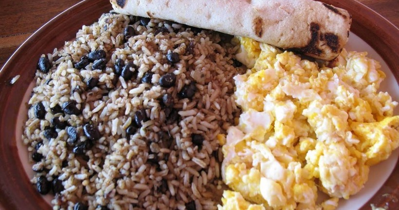 Традиционный завтрак — это как раз гайо пинто, жареное яйцо, кусочек сыра местного производства (сыры и другая молочная продукция здесь по большей части соленые) и тортилья (кукурузная лепешка).
