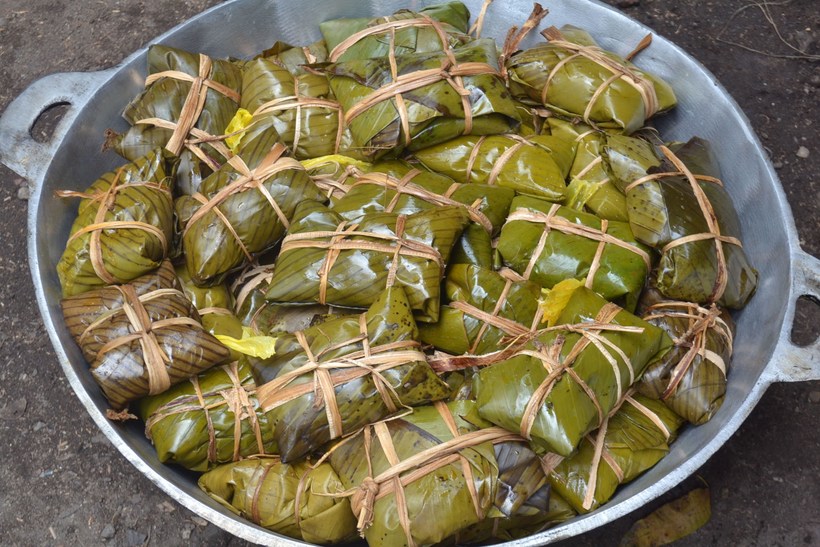 - Накатамаль (Nacatamal). Что-то вроде котлеток. Готовится смесь из кукурузного теста и сала, которую фаршируют мелко нарезанной свининой или курицей, рисом, картофелем, помидорами, луком, ломтиками перца. Все это обматывается банановыми листьями (их нельзя кушать), обвязывается тонкой нитью таким образом, чтобы порция накатамаля была похожа на маленькую подушечку. Накатамаль варится не менее 4 часов.