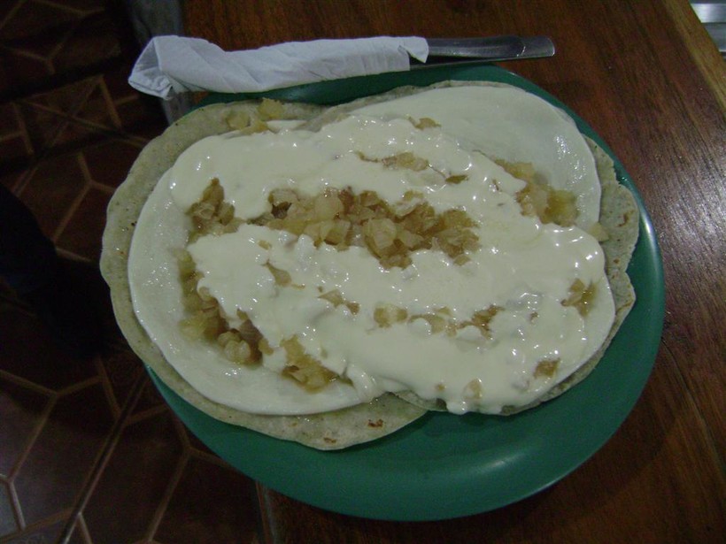 - Кесийо (El Quesillo). Родиной этого блюда считается департамент Леон, а именно города Ла Пас Сентро и Нагароте. Это очень простое блюдо: в тортилью заворачивается специальный сыр, а сверху все поливается смесью лука с уксусом, а также сметаной (никарагуанская сметана более жидкая и соленая, в отличие от нашей), и добавляется щепотка соли.
