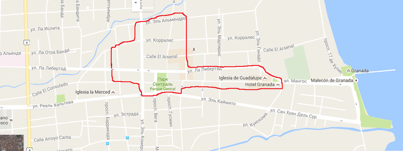 Начать путешествие по Гранаде я рекомендую с Центрального парка. Все остальные достопримечательности находятся рядом. Устав с дороги, вы можете подкрепиться в Kiosco El Gordito, съесть по тарелке вигорона и попробовать замечательный освежающий какао.