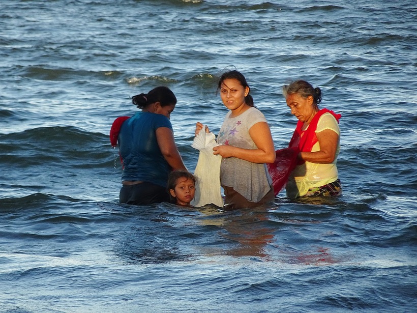 Это настоящий общественный пляж, куда съезжается много людей. Здесь большое количество ветвистых деревьев, в тени которых можно спрятаться от жгучего солнца, множество ларьков с разнообразной едой и напитками. Это место считается самым дешевым во всей стране. Типичная картина: купающиеся в одежде (никарагуанцы купаются в одежде, футболках и шортах, а мне даже как-то неловко надевать купальник — все равно что в нижнем белье перед ними одетыми) местные со своими детьми и домашними животными, тут же пляжный волейбол или футбол, а рядом продают всякие вкусности.