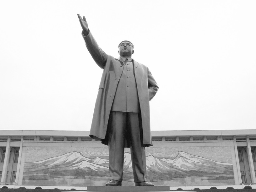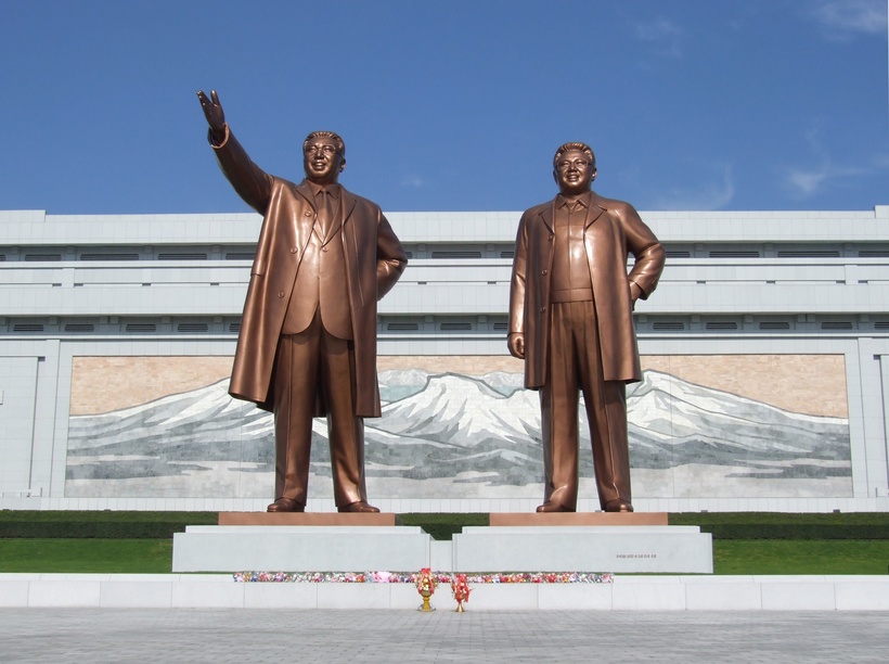 Это огромная статуя Ким Ир Сена, который до сих пор официально считается президентом КНДР, несмотря на то, что умер 15 лет назад.