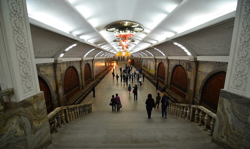 Самая глубокая система метро в мире - 110 метров. На станциях есть большие фрески, каждая предназначена воплотить различные идеалы. Большинство видят только Puhung и Yonggwang на линии Chollima.
