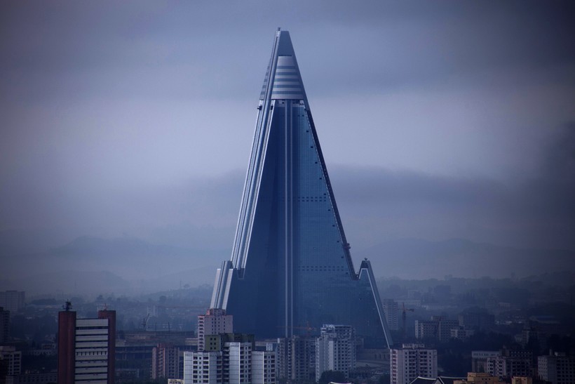 Это 105-этажное здание высотой 330 метров доминирует над горизонтом Пхеньяна. Строительство началось в 1987 году, но когда (в 1992 году) закончились средства, стройка приостановилась.