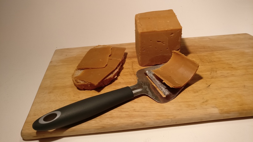 - Традиционный коричневый сыр. Сыр по вкусу напоминающий советскую сгущенку сваренную прямо в консервной банке дома. Несмотря на сладко-соленый вкус — восхитительно сочетается с чашечкой утреннего кофе.