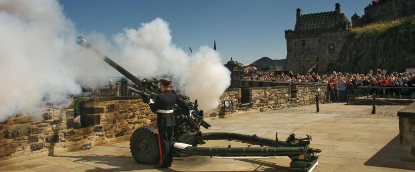 Изначально используемая для оказания помощи морякам в заливе Ферт-оф-Форт и позволявшая жителям Эдинбурга корректировать свои часы, пальба из пушки сохраняется в настоящее время исключительно в качестве развлечения для туристов (ежедневно, кроме воскресений, Страстной пятницы и Рождества). Церемония проводится с военной точностью и производит на зрителей неизгладимое впечатление. Хотя наш полуденный залп со стены Нарышкиного бастиона Петропавловской крепости ничем не хуже :-). Кстати, если вас застал дождик, то за церемонией можно понаблюдать из кафе напротив, заодно и подзарядить все ваши девайсы (при наличии адаптера, конечно).