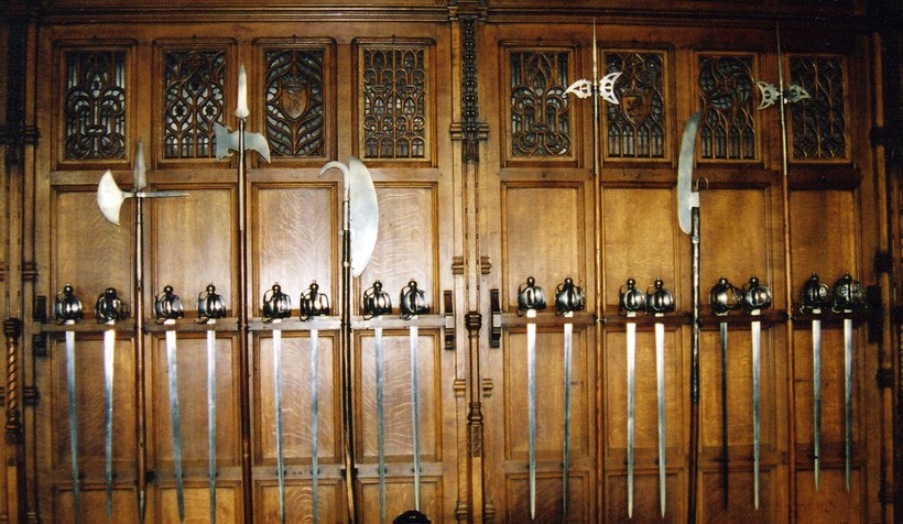 Теперь стены украшают различного рода доспехи и оружие. Среди стандартных мечей и щитов также представлены вещицы очень странной формы, в том числе и известная лохаберская секира, появившаяся в Шотландии, а затем и распространившаяся по всей Европе.