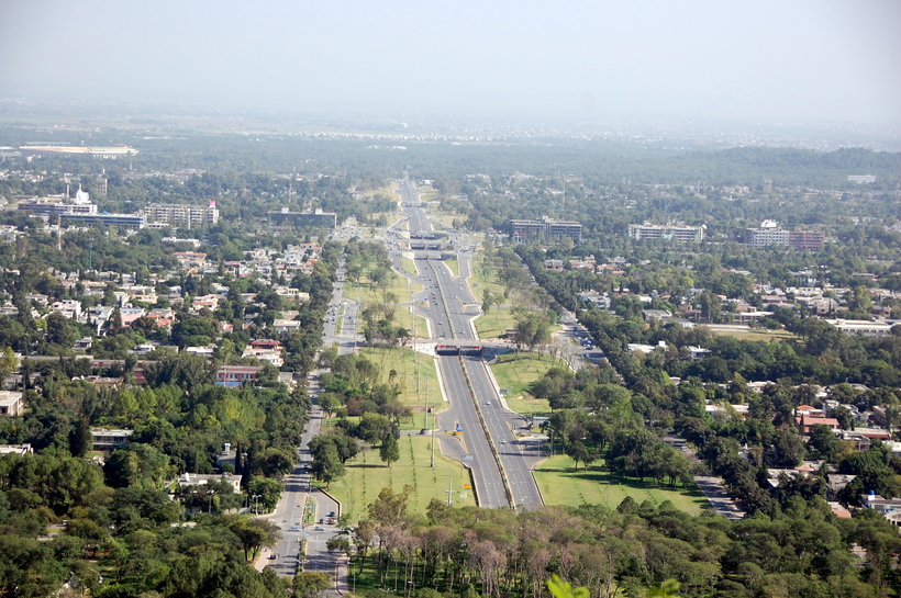 Blue Area, финансовый центр Исламабада, является основной дорогой, которая ведет до главных правительственных зданий на проспекте Конституции.
