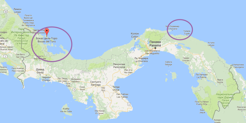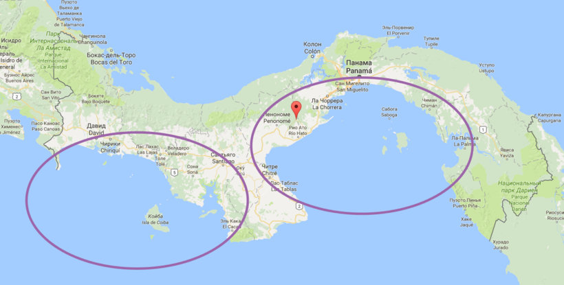 Узкий перешеек суши между Атлантикой и Тихим океаном с юга граничит с джунглями Колумбии, а с севера – с холмами и лесами Коста-Рики.