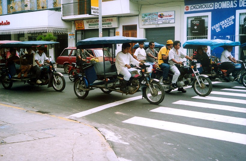 До города невозможно добраться на автомобиле, поэтому в Икитосе мотоциклы и моторикши популярней, чем где-либо. Создается впечатление, что город захватила банда байкеров, отчего он стал более сумасшедшим и шумным. Водители не соблюдают правила, поэтому движение довольно хаотичное. Реклама мотоциклов и магазины запчастей в городе на каждом шагу, многие зарабатывают тем, что сторожат мотоциклы других людей, пока те ходят по магазинам (даже кладут картонку на сидение, чтобы оно не нагревалось).