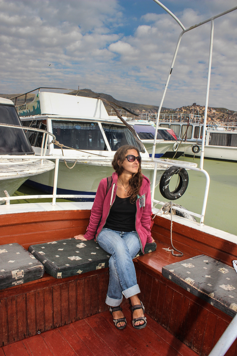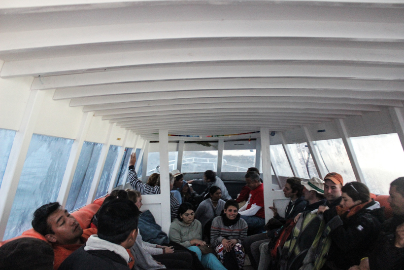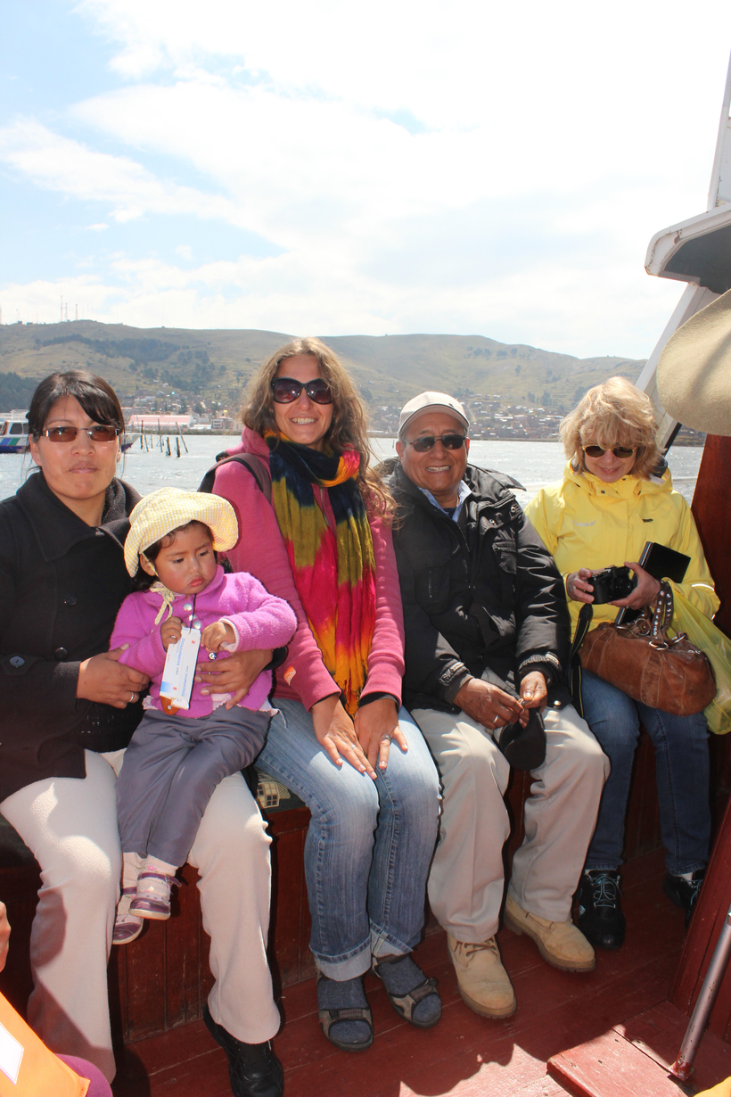 На плавсредстве сложилась команда. Один пассажир протирал стекло, чтобы капитан видел, куда плыть. Другой пассажир помогал менять баки с бензином, а все старались делать вид, что ничего не происходит. Было страшновато, в шторм на Титикаке я еще не попадала…Паники не было, но каждый раз когда лодку начинало раскачивать, а очередная волна громко разбивалась о лобовое стекло, руки нервно цеплялись за перегородку, а внутри все переворачивалось, круче чем от первых впечатлений от «Титаника». Когда капитан стал спрашивать впереди сидящих, на месте ли якорь и не смыло ли его волной, стало не по себе. Видимо, бабуля знала толк в заклинаниях, и мы все же прибыли в пункт назначения живыми. Все аплодировали капитану.