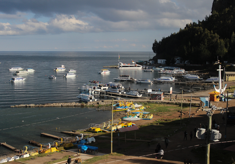 Набережная у озера, откуда открывается отличный вид на голубую водную гладь. Отсюда близко до пристани и основных развлекательных мест Копакабаны. К слову, мы жили в отличном отеле с просторными комнатами и огромными панорамными окнами с видом на озеро за 15 USD (номер на двоих с включенным завтраком).То есть не стоит пугаться размещения и стоит всегда уточнить цену, скорее всего будет недорого. Есть тут и отели подороже. Обычно это означает 25-35 USD за номер, но можно встретить и исключения (до 80-90 USD).