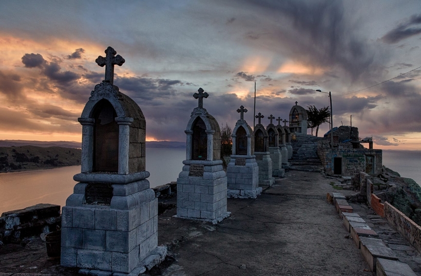 Смотровая площадка Голгофа, Копакабана, Боливия (Cerro El Calvario). Смотровая площадка находится в боливийской Копакабане, на холме с драматическим названием «Голгофа» на высоте 4100 метров над уровнем моря. Подъем занимает 40-60 минут в зависимости от поднимающегося.Наверху можно увидеть символические изображения 14 остановок Христа на его крестном пути, а также колоритных индейских шаманов, которые иногда поджигают чудодейственные благовония. Особенно красив вид в закатный час, но помните, что лучше спуститься побыстрее, чтобы не очутиться в полной темноте, раньше с подсветкой были проблемы.Удобно то, что лодка с острова Солнца прибывает в 17-20, и если силы остались, то можно успеть подняться на Голгофу. Обязательно берите с собой воду, так как высота ощущается в каждом шаге. Восхождение берет начало от красной церквушки (Capilla Del Señor De La Cruz De Colquepata), расположенной на улице 3 мая (calle 3 de mayo). Подъем начинается со ступенек, а затем остаются лишь камни, которые добавляют мистики месту и по которым лучше карабкаться в удобной обуви.