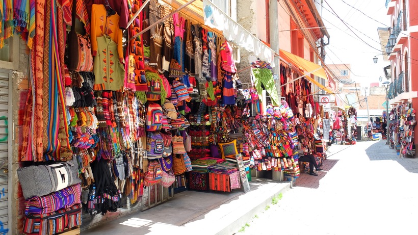 Помните, что в Боливии цена на продукцию из шерсти ламы и альпаки гораздо ниже, чем в соседнем Перу. Торговые центры — это преимущественно стихийный рыночный формат, либо просто одиночные местные жители, продающие то, что сделано своими руками.