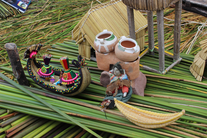 На плавучих островах Урос можно приобрести плетеные сувениры и красивые панно с вышивкой, выполненной в ярких цветах (от 5 USD).