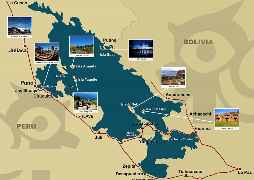 Озеро находится на границе Боливии и Перу и занимает невероятную площадь в 8500 км². Водная граница между двумя странами делит озеро практически на две равные части с небольшим перевесом у Перу (56% и 44%). Озеро знаменито самыми большими запасами пресной воды в Южной Америке и тем, что оно самое высокогорное озеро из судоходных. Однако всё это лишь скучные подробности.
