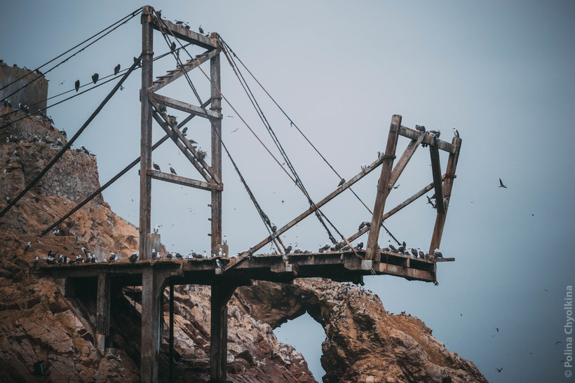 Всё-таки человек оставил свой след на островах. Дело в том, что в прошлом веке здесь обнаружили очень ценный для удобрений птичий помёт, поэтому здесь остались кое-какие конструкции, построенные людьми.