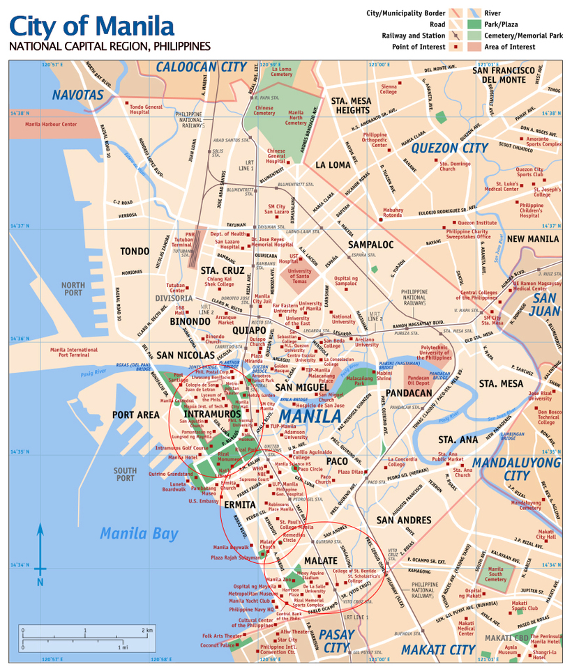 Манила же, столица Филиппин, также состоит из 16 районов: