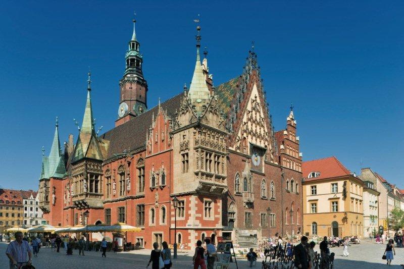 - Gotycki Ratusz na wrocławskim rynku. Этот шедевр зодчества является визитной карточкой Вроцлава. Здание расположено в Старом Городе, который я бы тоже отнесла к топ-достопримечательностям.