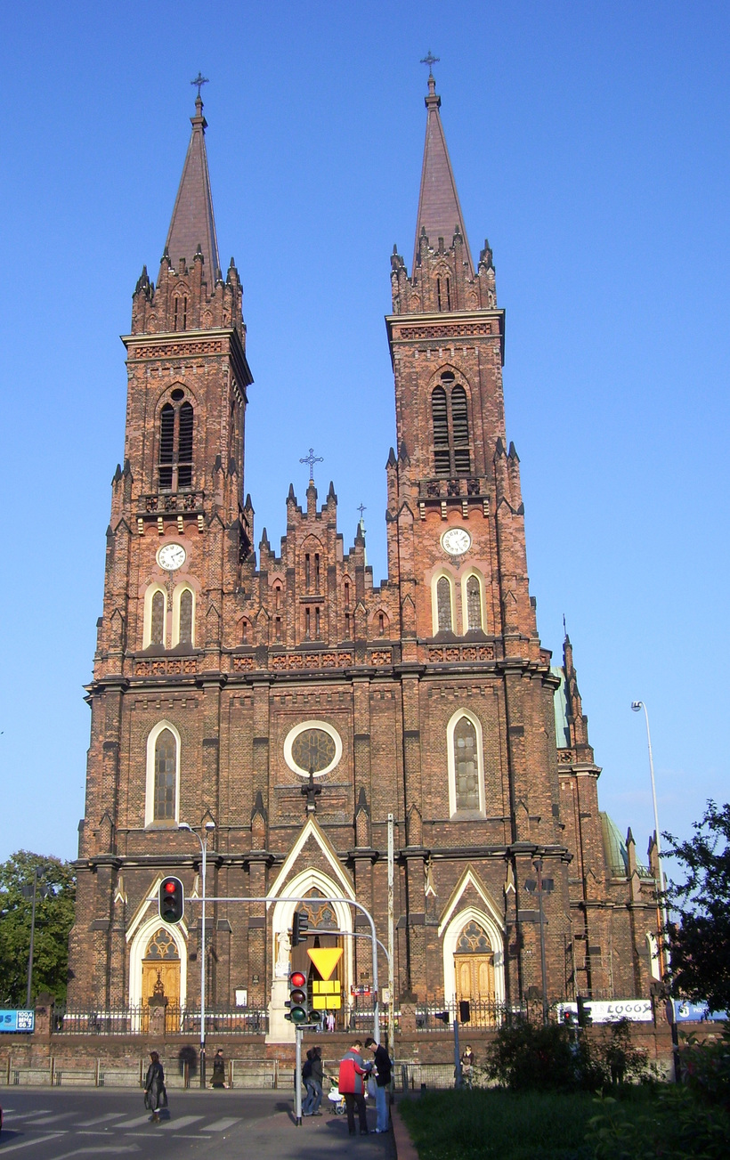 - Архикафедральный собор святого Станислава Костки. Как я уже и говорила, костел построен в неоготическом стиле. Строительство началось в 1901-1912 годах, а закончилось в 1927 году. Костел является центром духовной жизни Лодзи. Он похож на соборы Франции и Германии. Вообще обределенные характеристики костелу придает его материал. Построен он из нетипичного желтого кирпича, что не делает его таким громоздким. Рядом с костелом располагается Курия Бискупа и духовная семинария. Адрес: ul. Piotrkowska 265.