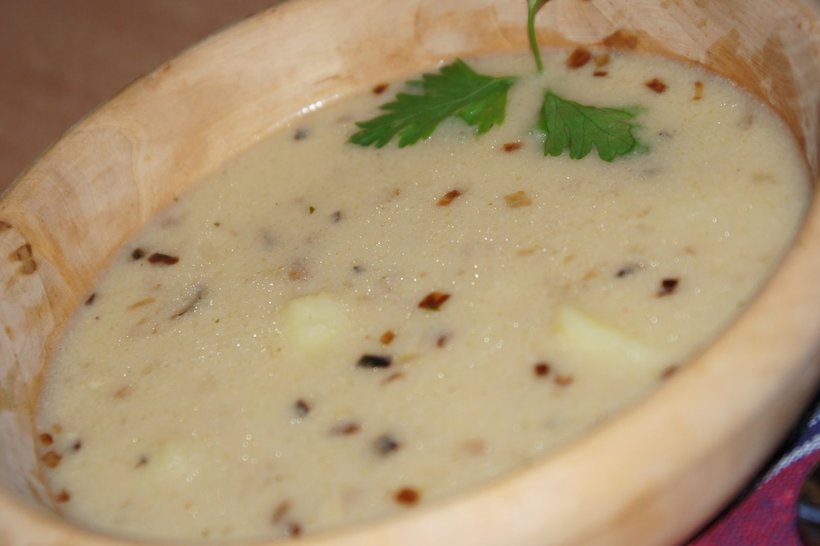 - Одним из таких блюд является «Залевайка». Блюдо едят очень часто: на завтрак, обед и ужин, потому что его невероятно легко сделать. Суп готовится из очень популярных ингредиентов: лук, картофель, иногдазакваска и сушенные грибы. Название супа произошло от способа приготовления. Просто все ингредиенты заливались закваской. Вот и получилась залевайка.