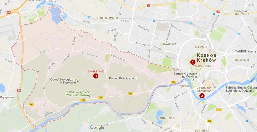 Старе Място (старый город) – район со всеми главными достопримечательностями города: рыночной площадью, королевской дорогой и замком Вавель. На карте обозначен цифрой 1.