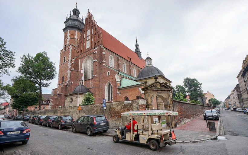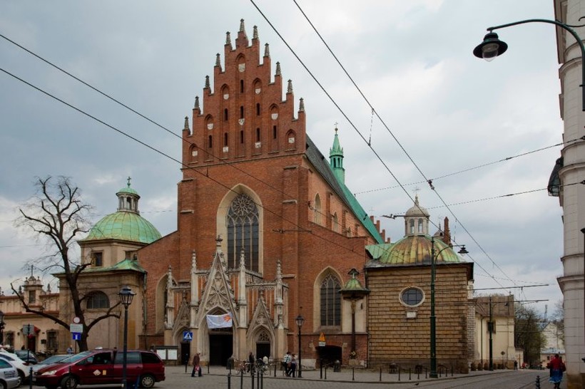 Доминиканский костёл (ul. Stolarska 12) – один из самых больших католических комплексов в Кракове, включающий сам костел и несколько фамильных часовен вокруг. Любопытно, что этот костел, как и большинство храмов Польши, отделан красным кирпичом, что для нас, привыкших к бело-серой мраморной готике, выглядит непривычно.
