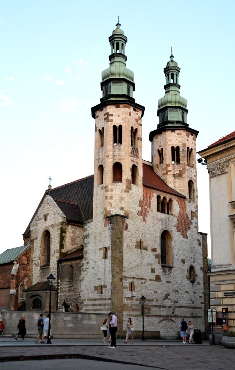 Костел Святых Петра и Павла выгодно выделяется и на фоне расположившегося по соседству костела Св. Анджея. Это простое здание белого камня с двумя башнями, увенчанными типичными для Кракова зелеными крышами – старейший храм в городе.