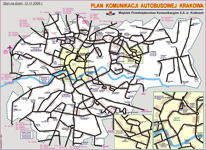 Есть также возможность воспользоваться городскими автобусами: в дневное время аэропорт обслуживают 208 и 252 маршруты, по ночам здесь ходит 902 автобус. Стоимость проезда чуть меньше евро (4 злотых), расписание автобусов и все остановки маршрутов можно посмотреть здесь. Я бы рекомендовала вам воспользоваться 208 автобусом, так как его конечная остановка центральный ж/д вокзал города, откуда вы легко доберетесь до центра и окажетесь вблизи гостиниц. Второй маршрут огибает старый город с юга, так что если ваш отель в этой части города, ориентируйтесь по карте.
