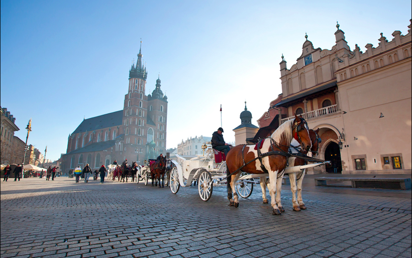 Рыночная площадь города – до сих пор одна из самых больших в Европе. Неспешная прогулка по ее периметру заняла у меня почти полчаса: я любовалась не только зданиями, но и проезжающими мимо экипажами – именно здесь они ожидают туристов, заманивая их на довольно дорогую, но романтичную экскурсию. В одном из концов площади почти всегда стоит какая-нибудь сцена, в наш приезд здесь по вечерам устраивались кукольные представления. Но её размеры позволяли в то же время в другом уголке группе молодежи устроить фаер-шоу и площадку для брейка. При этом ни тусовщики, ни театралы совершенно не мешали людям, отдыхающим в кафешках и ресторанах, представьте, насколько велик этот «рынок»!