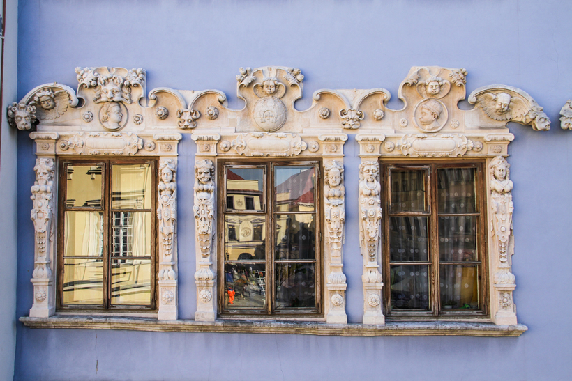 Спустившись с Тринитарской башни можно сразу направиться на старую рыночную площадь и полностью окунуться в эпоху Ренессанса. От богатства фасадов каменных построек захватывает дух! Мне потребовалось около часа, чтобы обойти всю площадь и рассмотреть каждую роспись в отдельности.