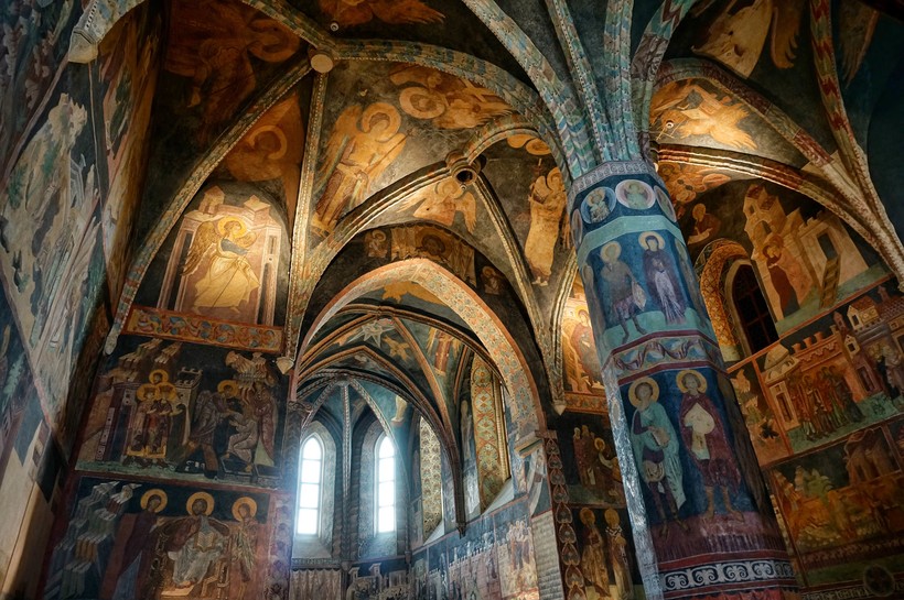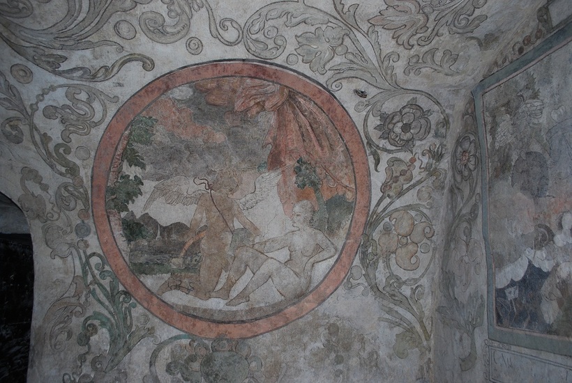 Но большее впечатление на меня произвёл десятый зал, ранее служивший винным погребом. Стены зала украшены уникальной полихромной росписью XVI в. на светскую тематику. А изображения на потолке воспроизводят сцены античной мифологии и литературы.