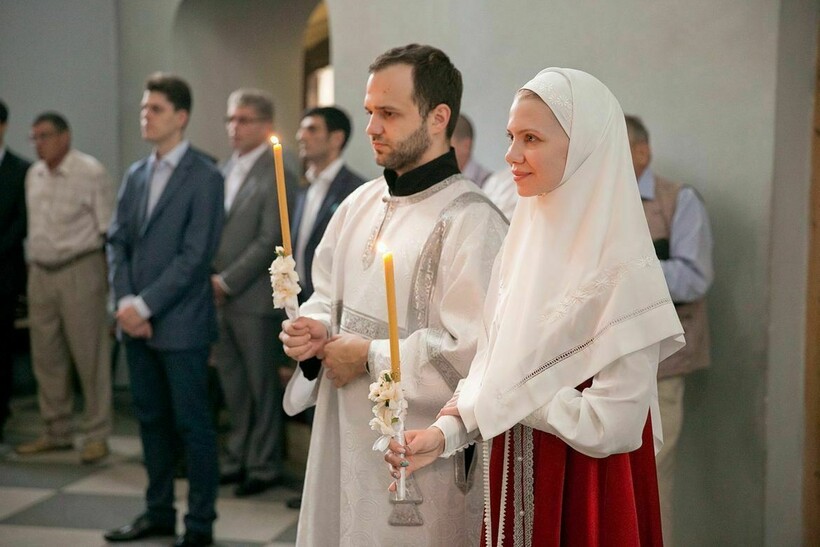 кортеж из авто для молодых, родителей, гостей (когда-то все шли пешком в церковь);