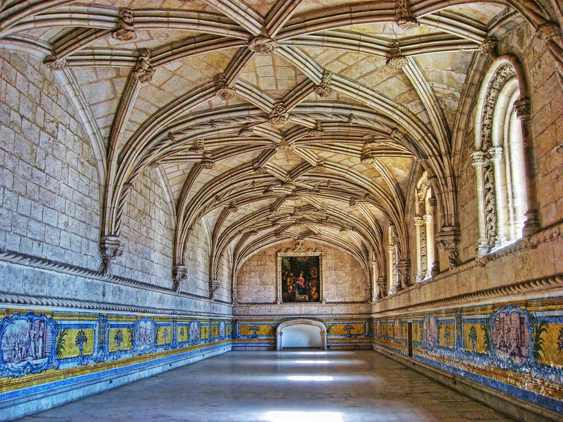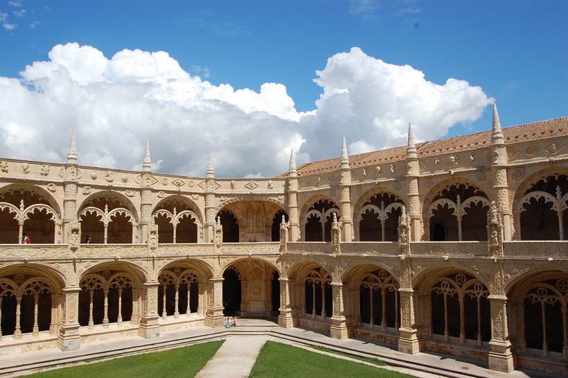 Стиль, в котором построен монастырь, получил название мануэлино. Это уникальное португальское изобретение, представляющее собой смесь пламенеющей готики, ренессанса и мавританского стиля. Для мануэлино характерна морская тематика – витые из камня веревки, элементы ракушек и кораллов в орнаментах. Я подолгу разглядывала причуды португальской архитектуры, поражалась обилию мелочей и пыталась оценить усилия, на них потраченные.