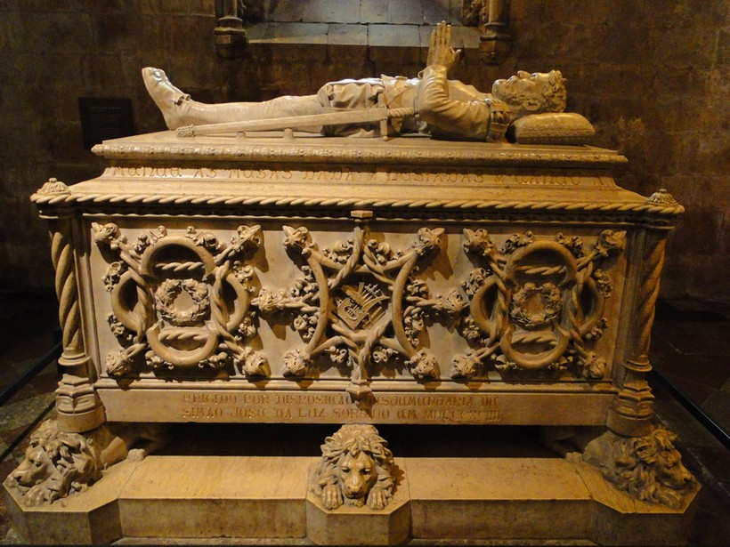 В алтарной капелле стоят королевские надгробия. Здесь похоронен и король Мануэл I с женой Марией. Кстати, у короля при жизни было прозвище «счастливый». При нем Португалия достигла своего рассвета. Королевские надгробия вы узнаете по каменным слонам, на которые они опираются. Этакая дань индийским традициям. В вечный покой верхом на слоне.