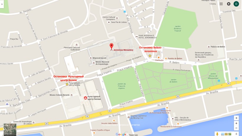 Приезжать лучше на целый день — ведь рядом с монастырем еще Морской музей. Он работает также, как и Жеронимуш, билет стоит 6,50 евро, детям — 3,20 евро. Еще оставьте час времени на пирожки. Местные «паштейс ду Белен» славятся на всю Португалию. Вы себе не простите, если уедете из Белема и не попробуете их. Кстати, за пределами Белема их называют «паштейш де ната» и очень обижаются, если вы вспомните Белем. Сразу начинают уверять, что их местные пирожки ничем не хуже.