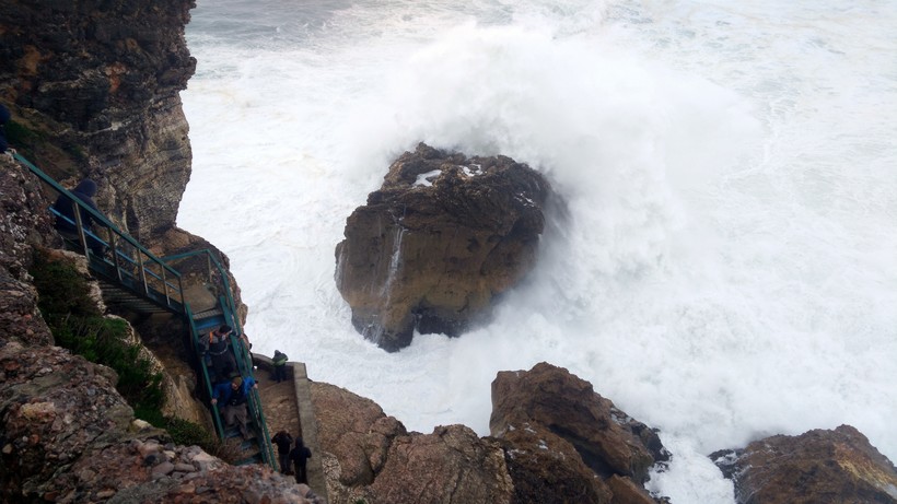 Вид с маяка просто незабываем. С одной стороны виден нижний Назаре, а с другой открывается панорама на Северный Пляж (Praia do Norte), известный всем серферам, готовым к опасным приключениям на волнах. А еще от маяка ведет вот такая лестница прямо в бушующий океан: