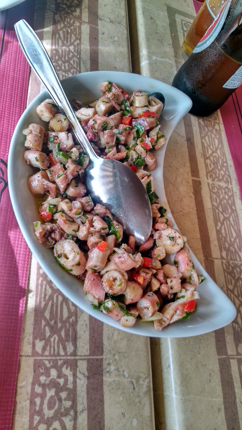 Обязательно возьмите что-нибудь на рынке, который каждый день открывается на пляже. Приобрести 200–300 грамм соленой рыбки к пиву можно примерно за 3 ЕUR. Диковинку можно выбрать самостоятельно, а бабушка в национальном костюме уже подскажет, готова ли рыба к употреблению. Самое необычное блюдо (да и зрелище тоже) здесь — это вяленый осьминог, которого я так и не осмелилась купить.