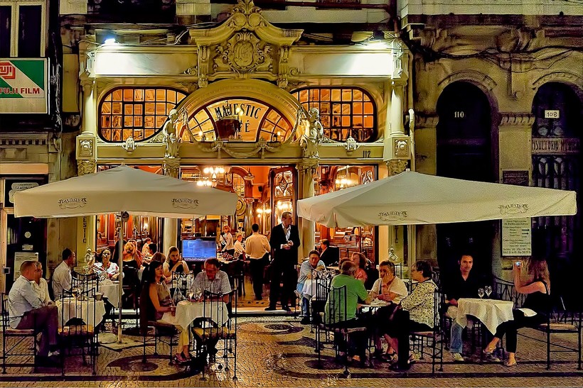 Дело в том, что автор романа Джоана Роулинг жила в Порту и когда-то вдохновилась интерьерами этого места, которое стало прототипом школы Хогвардс с волшебными лестницами. Туристов однажды стало так много, что владельцы взимают плату за вход в 3 EUR, которые идут в счет покупок. - Кафе Маджестик (Cafe Majestic). Также к топовым достопримечательностям я хочу отнести старинное кафе, расположенное в центре. Оно знаменито по всему миру своими богемными, волшебными и изящными интерьерами.
