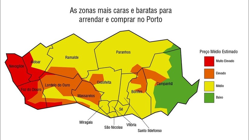 Кстати, то, что «золотая миля» Порту находится в прибрежном районе, меня удивило. В отличие от Москвы, жилье в центре в Порту как раз может позволить себе каждый, а вот чтобы поселиться возле океана, нужно иметь высокие доходы. Подтверждение этому буклеты риэлторов, которые традиционно выделяют зону побережья красным, как самую дорогую для покупки и аренды. Для сравнения – оранжевым отмечено дорогое жилье, желтым – средней категории, а зеленым самое дешевое.