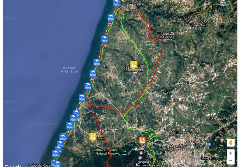 Прибрежная линия Синтры с пляжами выглядит примерно так – здесь их очень много, порядка 17.